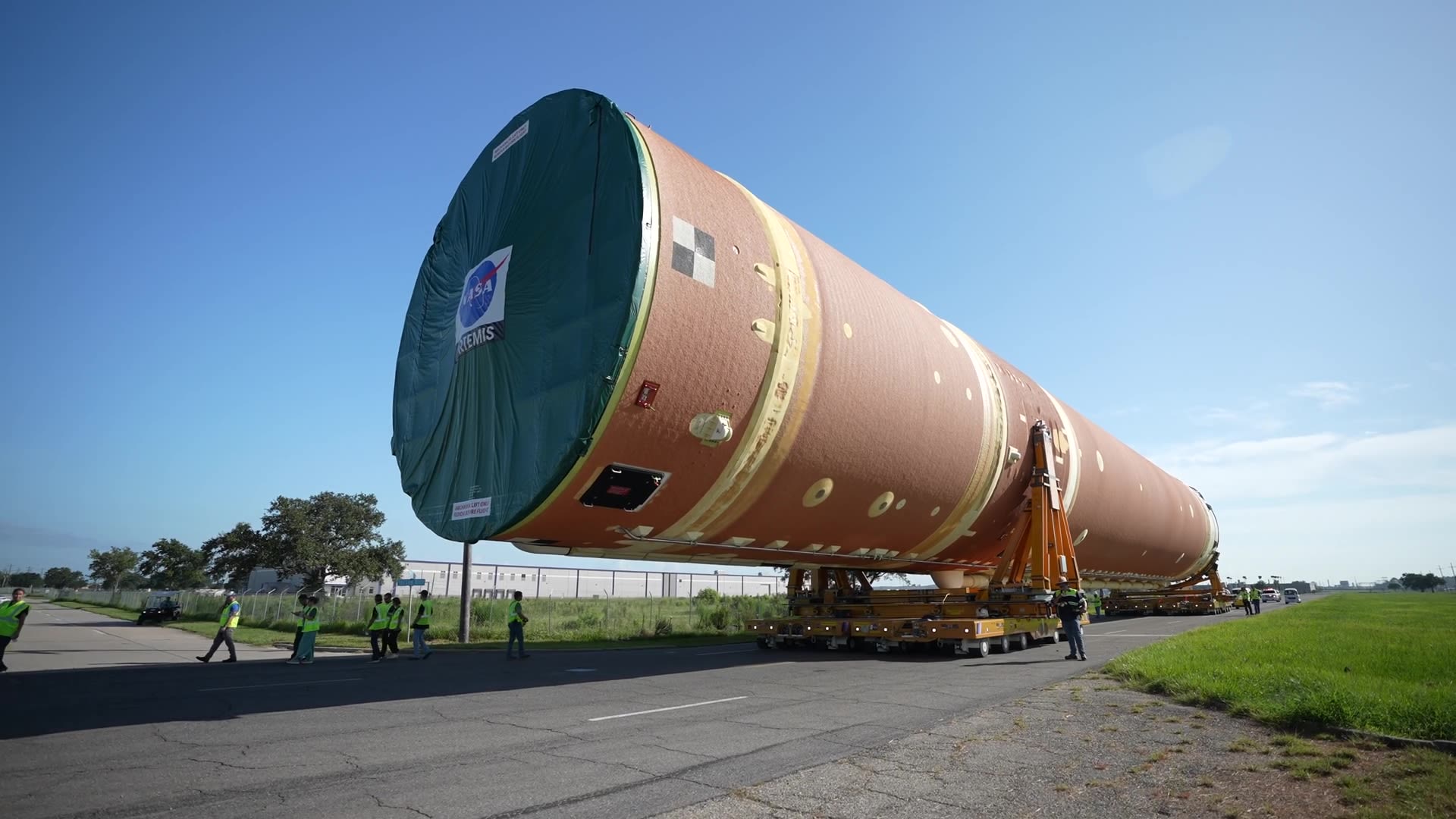 From Michoud—one of the largest manufacturing facilities on the planet—the stage would make a 900-mile journey by barge to the Kennedy Space Center in Florida, ready to be joined with the other SLS components.